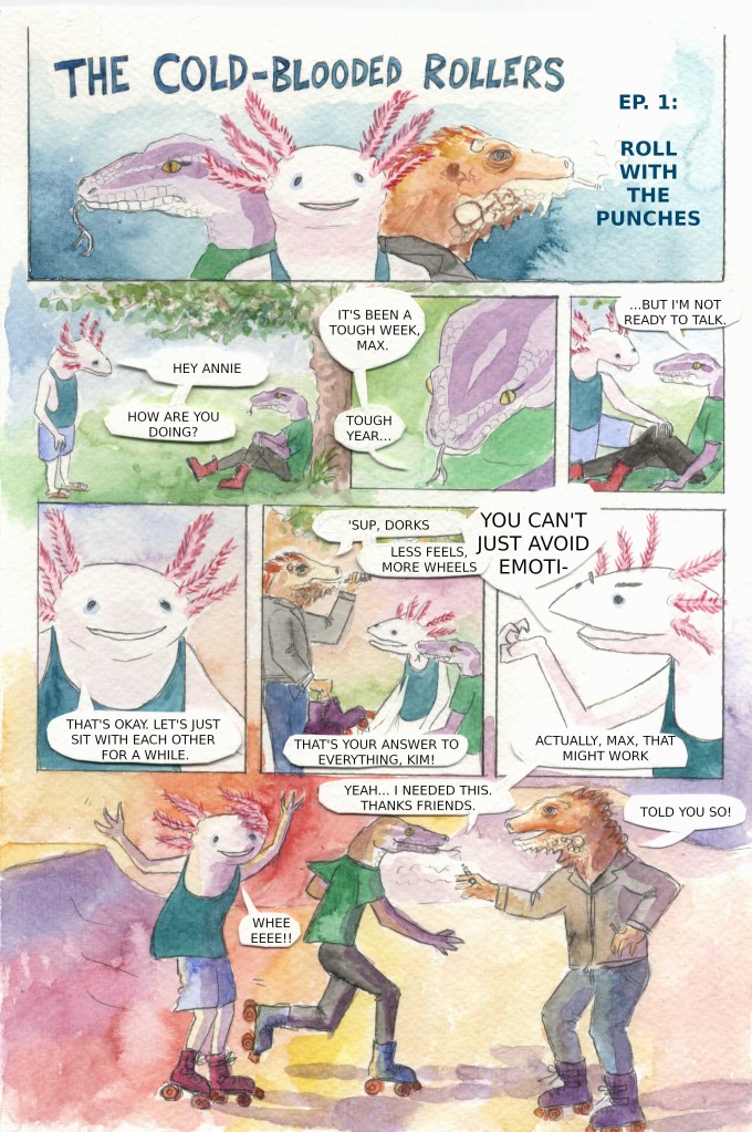 I put a piece into Wheely Cool Skate Zine Vol 1. by Stray Lines before realising that the zine was black and white! The piece was printed anyway, but greyscale watercolours don’t look so great, so I decided to put this up online too. The zine is very cool, check it out!
